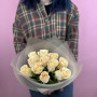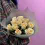 На фото букет из 11 кремовых роз. В составе: роза 11 шт, дизайнерская упаковка 1 шт, атласная лента 1 шт, . Все цветы свежие и ароматные, букет красиво оформлен и отлично подходит для подарка. Доступна доставка цветов или самовывоз.