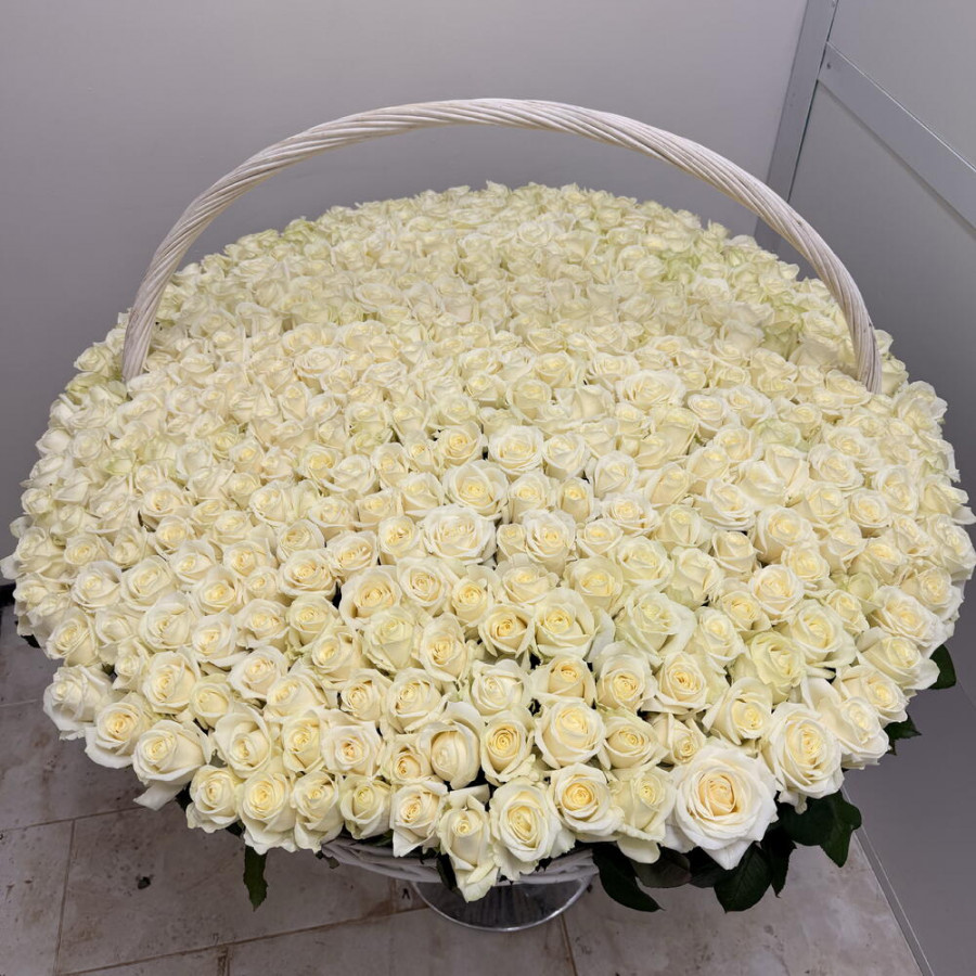 Букет из 501 белой розы в корзине «Нежность» в Тюмени