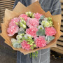 Букет из белой эустомы и розовых гвоздик в Тюмени